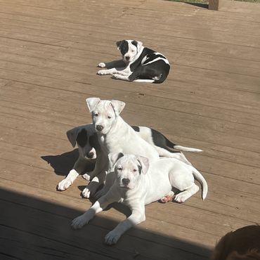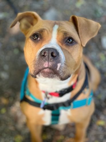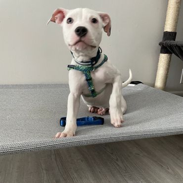 Simon is our most recent foster dog, and he turned 3 in February. He is a pit mix with a little bit of Bully and American Bulldog mixed in. Simon needs tons of physical and mental exercise, and he has severe arousal issues but they have improved dramatically since he started taking anxiety medication. Because of his high exercise/enrichment demands and his strict medication schedule, it is unlikely we would ever find him a suitable home (large, fenced-in yard, multiple other dogs to play with, and extensive training experience would all be necessary). In our experience, if he were adopted by someone who is less than perfect, he would probably end up dumped in a shelter and euthanized for "biting" someone (because of his arousal-induced mouthing behavior). In order to prevent this, we decided to adopt him; he is extremely happy here and probably would not be happy anywhere else, and we all love him.